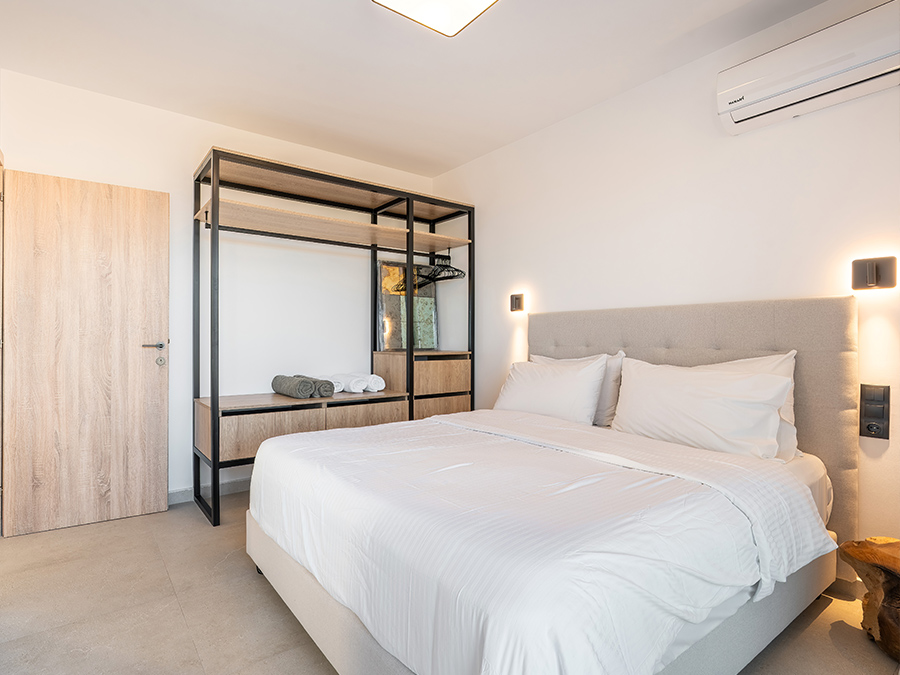 Each of the 3 bedrooms has a queen-sized bed, an air conditioning unit, a smart Tv connected to the WIFI, and an open wardrobe.