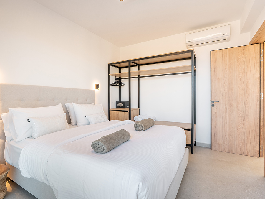 Each of the 3 bedrooms has a queen-sized bed, an air conditioning unit, a smart Tv connected to the WIFI, and an open wardrobe.