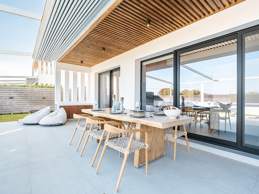 D&R Boutique Villas are modernly designed, 2023 built, fully furnished, and equipped with brand new appliances. Each 2-story villa has a BBQ area, an outdoor heated swimming pool, and a shower with 4 sunbeds. The large outdoor dining area consists of an elegant natural wooden 2.5-meter dining table and 8 wooden chairs. The villas are separated by a 1.8m fence and garden for privacy.